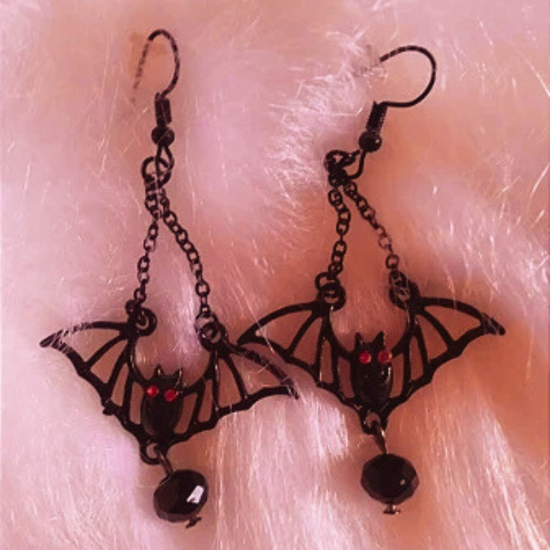 Na alquimia gótica, o morcego não voa – comanda a noite. Estes brincos são: